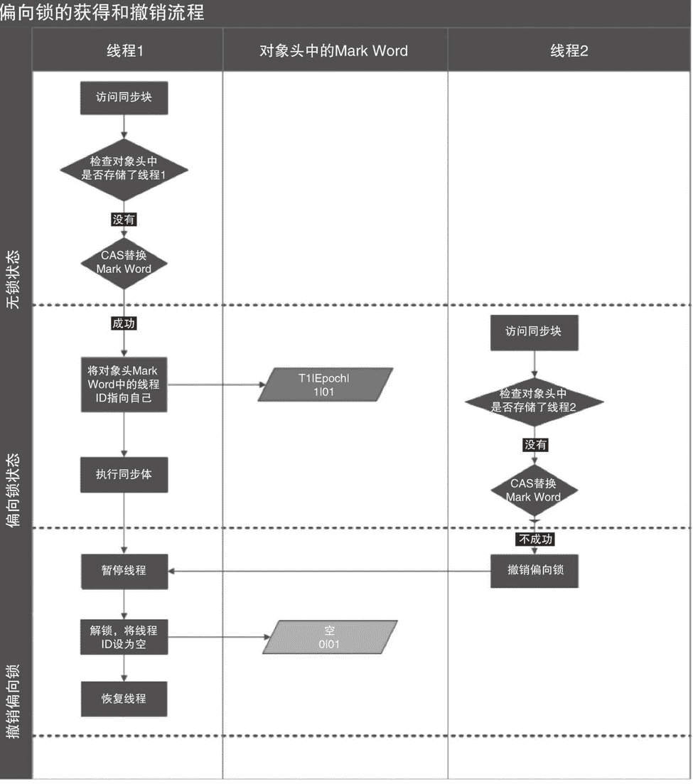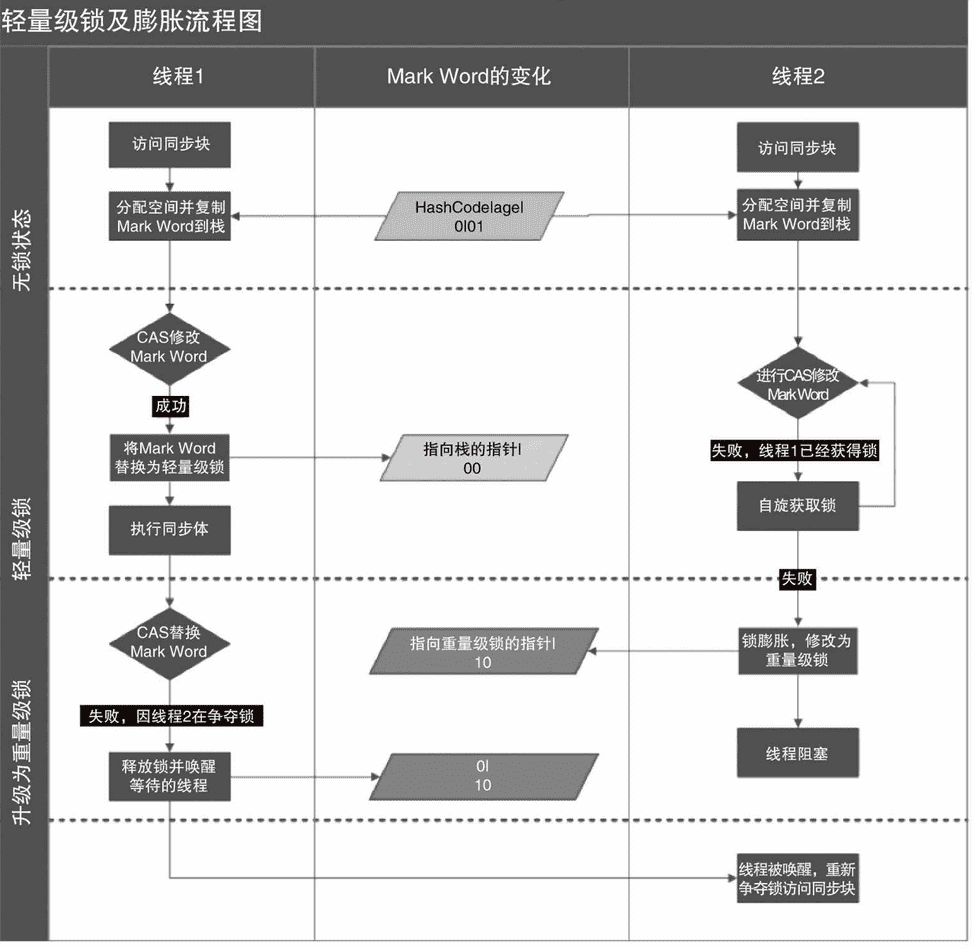 对于升级和降级的过程之前的 浅谈并发:锁 里有简单说明,这里就引用两张比较形象的图说明吧(来源:《Java 并发编程的艺术》):