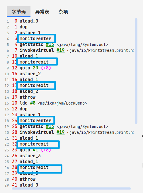 上面的代码非常简单,就是把各种使用方式都列举了出来,通过 javap -v LockDemo.class