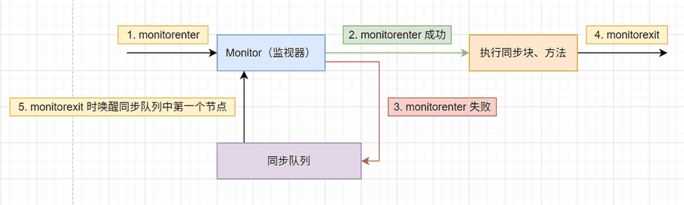 synchronized 是非公平锁,在 5 过程中,同步队列唤醒的时候并不代表唤醒的节点一定会在下一次执行,如果有刚好来抢锁的(monitorenter