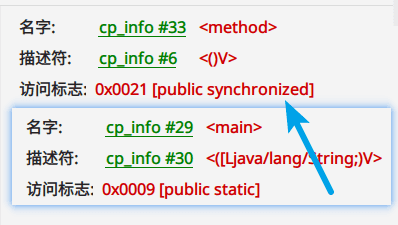 指令实现。不过标注在方法上的是通过访问标志(flags)实现的,JVM 在进入存在 ACC_SYNCHRONIZED