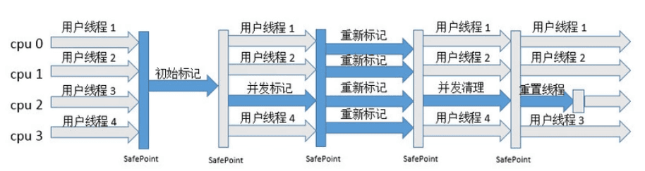 3. 最终标记:与 G1 一样,都是修正并发标记期间因线程继续运行导致的标记变动。